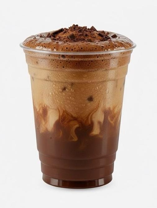 Bebida fría de café con chocolate, suave, dulce y energizante.