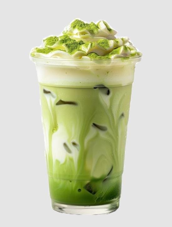 Refrescante bebida de té matcha con leche y hielo, con un toque dulce y cremoso.